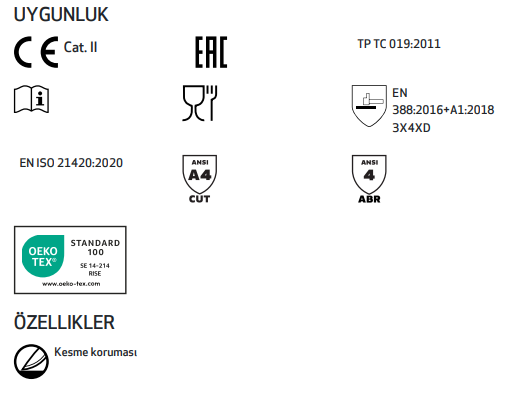 KESİLME DİRENCİ: (EN ISO 13997) TDM: 23.2 N