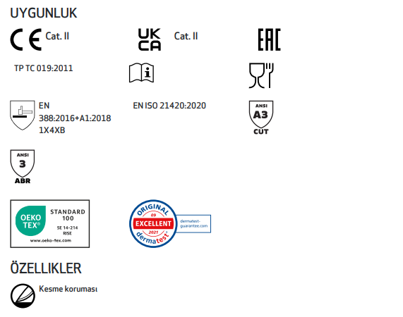 KESİLME DİRENCİ: (EN ISO 13997) TDM: 8.5 N