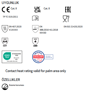 TÜR: Kesilmeye karşı dayanıklı eldivenler, ısı korumalı eldivenler