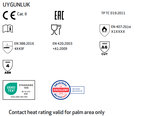 TÜR: Kesilmeye karşı dayanıklı eldivenler, ısı korumalı eldivenler